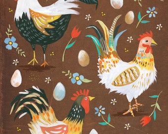 Chickens Art Print | Watercolor Quote | Hand Lettered Wall Art | Rustic Artwork | Katie Daisy | 8x10 | 11x14