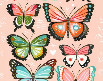 Butterfly Collection art print | Nursery Decor | Colorful painting | Katie Daisy