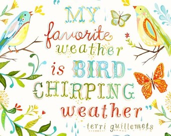 Bird Chirping Weather Art Print | Watercolor Quote | Inspirational Wall Art | Hand Lettering | Katie Daisy | 8x10 | 11x14