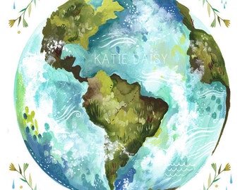 Dear Earth Art Print | Watercolor Wall Art | Inspirational Print | Globe | Katie Daisy | 8x10 | 11x14