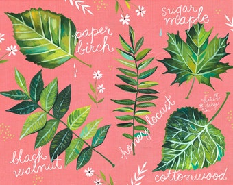 Leaf Chart | Acrylic Painting | Nature Wall Art | Outdoorsy | Katie Daisy | 8x10 | 11x14