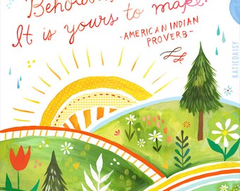 Behold This Day Art Print | Watercolor Quote | Hand Lettered Wall Art | Watercolor Painting | Katie Daisy | 8x10 | 11x14