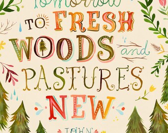 Fresh Woods art print | Nature Quote | Hand Lettering | Watercolor Typography | Katie Daisy | 8x10 | 11x14