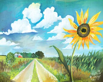 Country Road Art Print | Watercolor Painting | Nature Wall Art | Outdoorsy | Katie Daisy | 8x10 | 11x14
