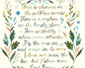 Pathless Woods Art Print | Watercolor Quote | Inspirational Print | Lettering | Outdoorsy | Katie Daisy | Wall art | 8x10 |