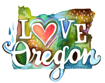 Love Oregon art print | Watercolor State Art | Wall Art | Katie Daisy | 8x10 | 11x14