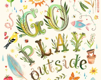 Go Play Outside Art Print | Watercolor Quote | Inspirational Print | Lettering | Outdoorsy | Katie Daisy | Wall art | 8x10 | 11x14