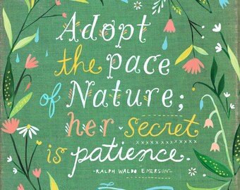 Pace of Nature - Quote - Ralph Waldo Emerson - various sizes - STRETCHED CANVAS - Katie Daisy art