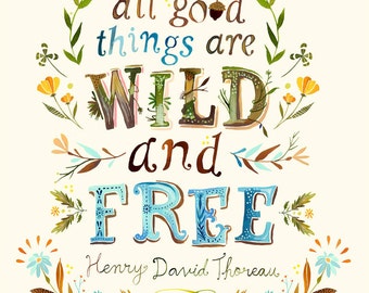 Wild and Free - Thoreau - various sizes - STRETCHED CANVAS - Katie Daisy art