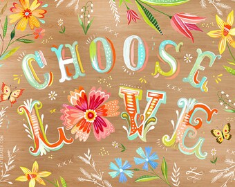 Choose Love Woodgrain - various sizes - STRETCHED CANVAS - Katie Daisy art