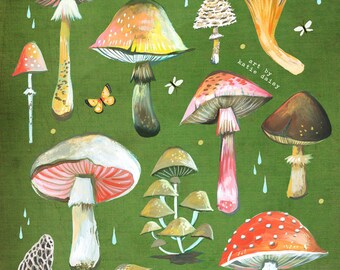 Mushroom Chart - various sizes - STRETCHED CANVAS - Katie Daisy art