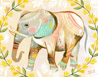 Elephant - various sizes - STRETCHED CANVAS - Katie Daisy Art