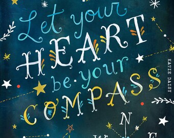 Heart Compass - various sizes - STRETCHED CANVAS - Katie Daisy art