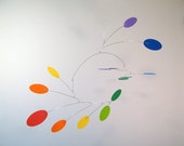 Measurements for mobiles stating in each listing are approximate because each mobile is made to order. My mobiles are always moving and their shapes are constantly changing. When I take measurements of mobiles in my shop, I measure the widest span when the mobile is in full extension. Think of the space a mobile takes up in terms of a three dimensional sphere and not like a flat picture frame. Make sure you have clearance on all sides of the mobile to ensure full range of movement. If you have a tight space and you are concerned if the mobile will fit, please contact me so I am aware of the limitations.