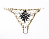 Working alone in my Montreal studio I developed my own techniques. Cutting, dyeing, treating the lace so it doesn't fall apart, stiffening it strategically and precisely for structure, painting and assembling the various jewelry pieces, are all part of the process. I do not cut any corners as good design and quality are what counts. Another part of the challenge is seeking out the lace, that will inspire new pieces or fit my designs, from a variety of sources (mostly vintage). Always rethinking the definition of jewelry itself, the idea of body jewelry was born when I inadvertently placed a necklace on my shoulder. Skirting the fine line between jewelry and clothing, leggings and a dress also became part of the collection.