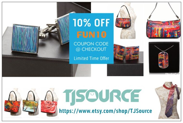 Welcome to TJSource where you can experience art on a personal level through our unique collection of stylish leather handbags, purses, neckties and jewelry featuring the art of Tabby Noorbakhsh. We make every effort to offer our products in an affordable price range which allows you, our customer, to give yourself a special artsy gift or to give the gift of wearable art to someone special in your life.