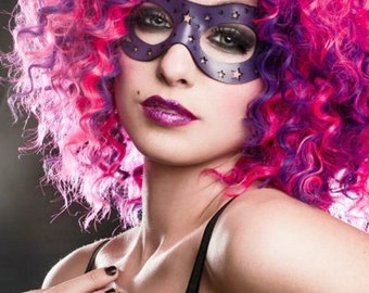 Moon and Stars Leather Mask in Purple