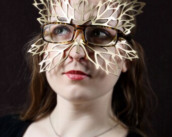 Lacy Leaf Mask for Eyeglasses in Gold Leather