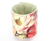 5 out of 5 starsThis cuff bracelet is sumptuous, well-designed, and gorgeous. The magnolia blossom print is striking, and I love the way that I can keep cash, identification, a house key, or whatever else safely tucked inside the inner pocket. Every item from this shop is a wondrous work of art. I am always delighted by every aspect of the items I receive.