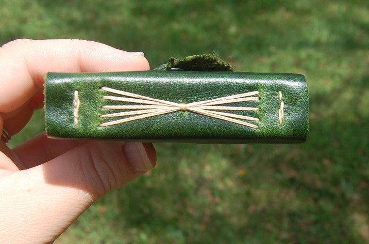 Combined stitching and metal embellishment for a unique spine. -