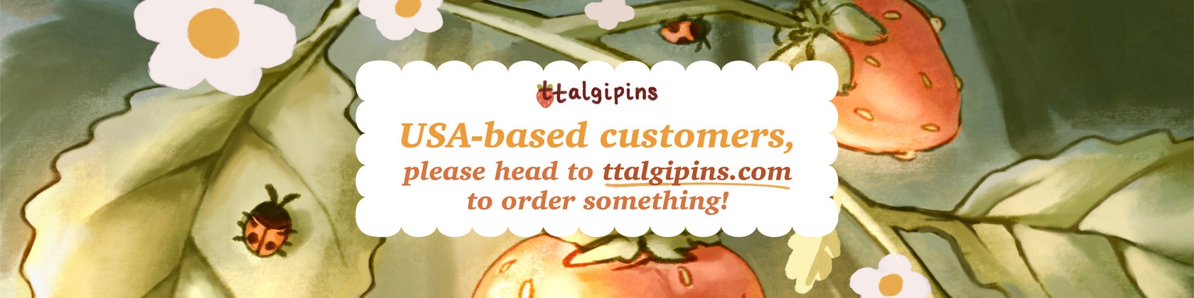 Preorder items may take up to 2-4 months, while they get funded! I ask for your patience if you order one, you can keep updated on any progress by following my Instagram where I am most active (@ttalgipins). Instocks may take up to one week, but I try to ship them out as soon as I possibly can!