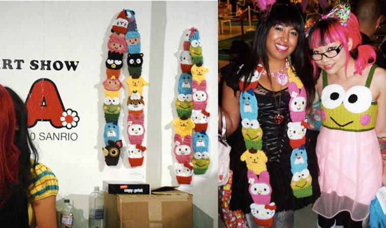 Me and Etsy seller MessyPink at the Sanrio 50th Anniversary Art Show with my special edition Sanrio scarves. -