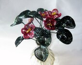 I make my flowers by stringing tiny glass beads onto wire and bending them into shape. My creations take time to make (The fern took nearly 4 months to complete and gave me an aversion to green that took almost a year to overcome), but the end results are worth it! I use various old techniques from around the world in addition to a few techniques I developed along the way out of necessity. Because I come from a long line of artists and craftsmen, my interests are widely varied but I always come back to my flowers. The possibilities are endless, and it's so much fun hunting down unique colors and finishes for my projects, because really what it all comes down to is... it's all about the beads.