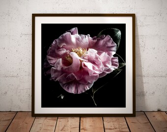 Moody Pink Camellia Flower Photographic Digital download, Photo Printable decor print, Botanical Interior Decorating, garden, home Art