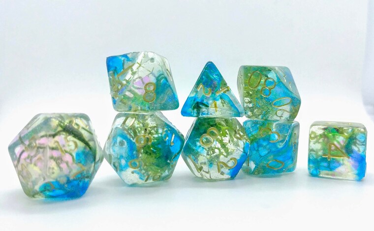 I was introduced, like many of you, to tabletop role playing high school. However my love of dice started much earlier. Throughout my childhood my father collected antique, lost or just simply odd dice in a jar. I would often sneak into it when left unattended and marvel at each die. With tabletop gaming the polyhedral set collection bloomed and as an unemployed antisocial teenager, sets were most always out of my price range. I love creating affordable and unique sets with that past teenage self in mind.
