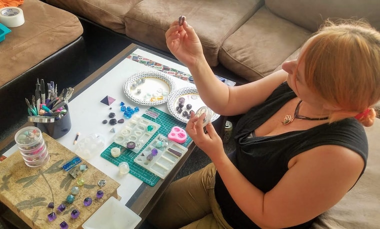 Resin art especially has always caught my fascination; I love to see “the devil is in the details”. Resin creates a snow-globe-like design frozen in time that show something new from each angle. I love being able to make something with the combination of my memory, imagination and hands.