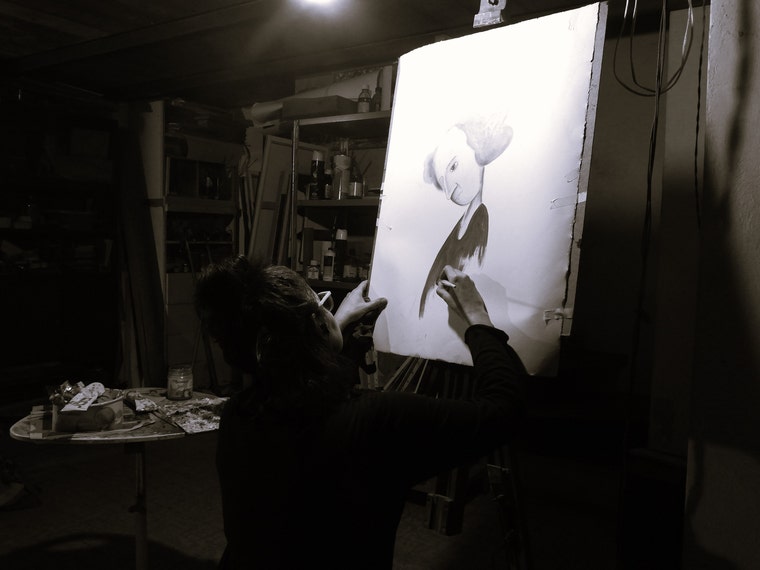 Hace unos años conocí a mi marido, el amor de mi vida; él es pintor y escultor y ahora vivimos juntos en una gran casa-laboratorio, entre muchos colores, pinceles y lienzos, y él me enseñó a pintar y esculpir... Tengo mi Maestro personal... Soy una mujer afortunada ^_^