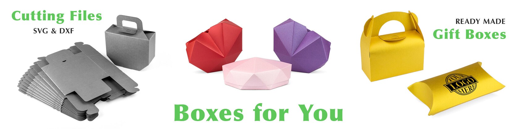 We have great box templates made for instant download that you can simply print on paper and cut out by scisors, X-Acto knife or a cutting machine. They come in PDF, SVG and DXF formats so that you can reshape the designs as needed.