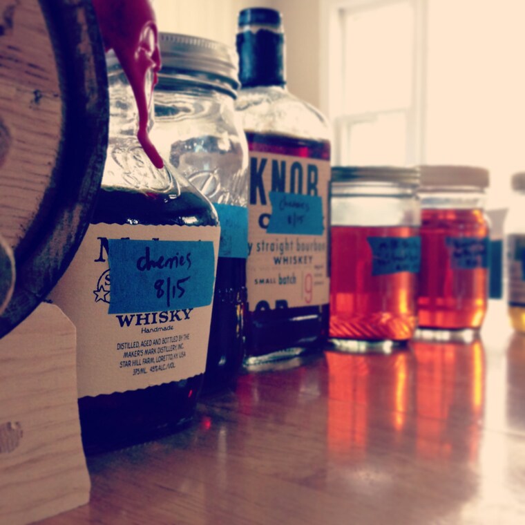 Strained bitter infusions ready for the oak cask