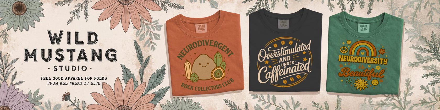 I started this shop to create feel-good apparel for people who live real, complicated lives — spoonies, neurodivergent folks, caregivers, and anyone who’s ever needed a little extra softness in their day. These pieces are designed to feel comforting, familiar, and easy — like your favourite shirt that somehow always knows when you need it most.