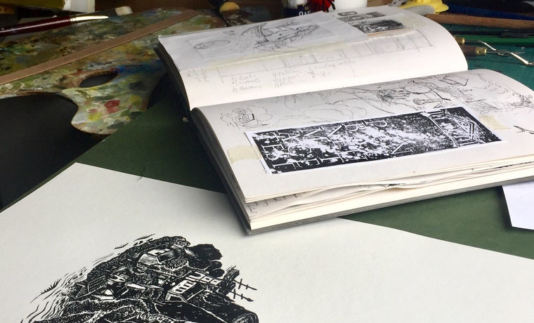 Workbench and sketchbooks -