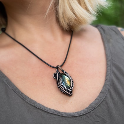 4 out of 5 starsThis piece of jewelry is beautiful. The wire work is exquisite and it is very masculine on me, but would make a stunning piece for a female as well. The quality of the materials are superb. The only thing that could make it better would be if the actual kyanite stone were more transparent. When I hold my flashlight up to it, it shines like crazy, but if you just hold it up to a window, the stone appears opaque.