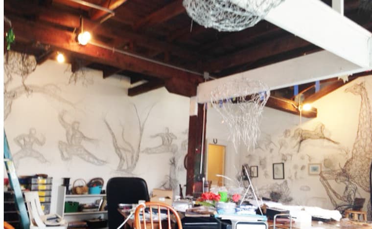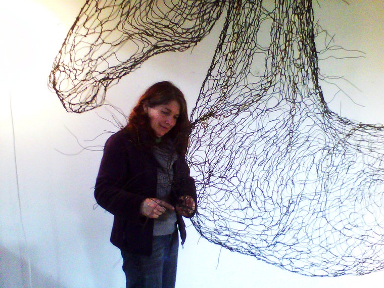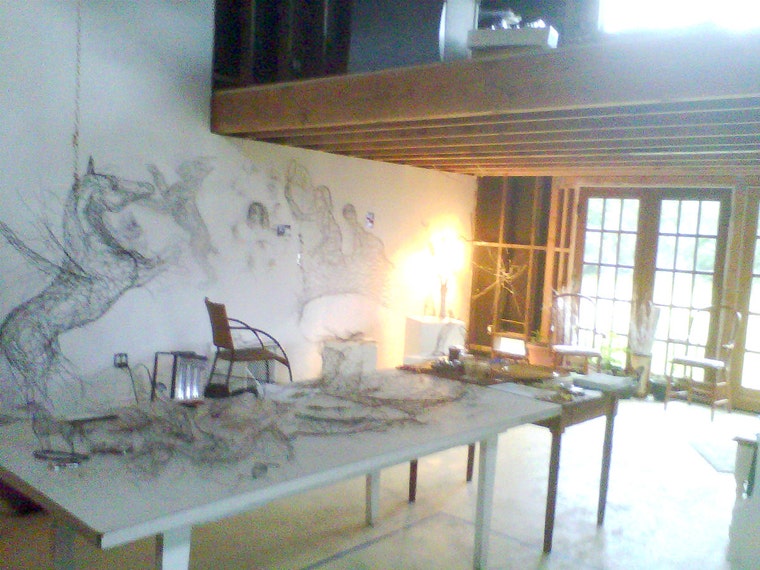 My present-day studio is large, light and airy, with plenty of white walls to display the tons of wire sculptures well. I love the soft old-growth redwood plank floor, too. On the first Saturday of most months, I join my fellow artists in a city wide Arts Alive, with open studios all around, It’s a wonderful time to meet artists and see the way they make their art! I also give tours of my studio by appointment. So if you ever come to Eureka, CA, contact me and I’ll show you around...