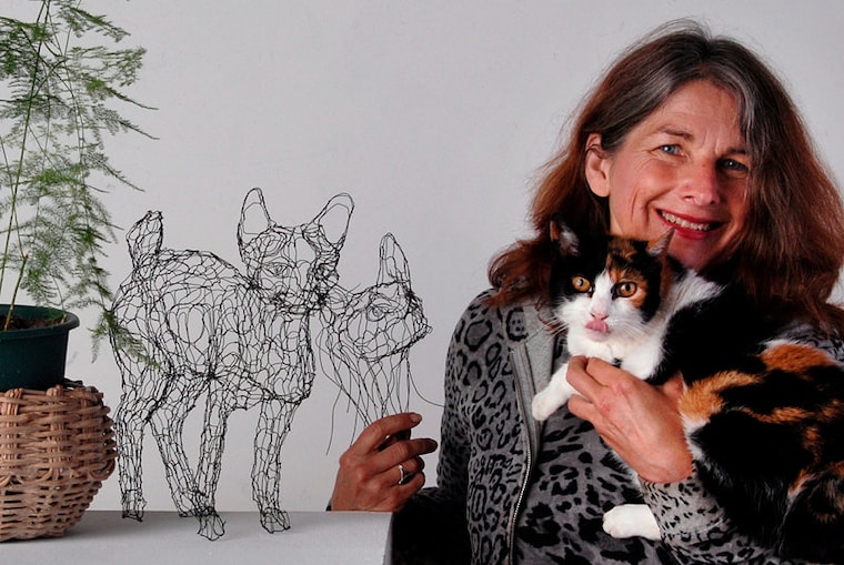 In my 45+ years as a wire sculptor, my Wire Zoo studio has been in my kitchen, outdoors at a wild animal park, within an art center, on a department store’s mezzanine level, in my own storefront, within a historic Victorian sawmill, inside a giant cattle barn, within my very own converted barn, and now, my very favorite: within a close-knit complex of a dozen art studios, operated by other professional artists and run cooperatively as a Hall Gallery.