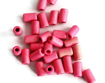 Fuschia Pink Ceramic Tubes, Fuschia Pink Medium Ceramic Beads, Fuschia Pink Greek Ceramic Beads, Barrel Beads 11x6 mm 21pcs C 10 101