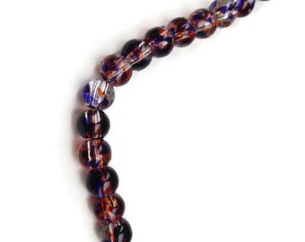 Purple Orange Spotted Glass, Round Beads Purple Orange Splatter Glass Beads, 6mm Round Spotted Glass Beads, Round Glass Beads G 50 030