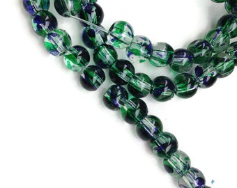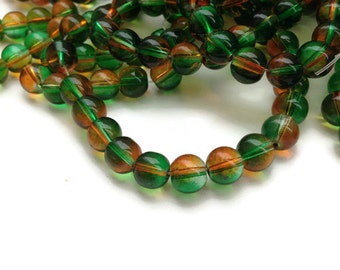 8mm Green Orange Glass Beads, Round Glass Beads, 50 Beads G 50 037