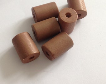 10 Brown Wooden Tube Beads, Geometric beads, Brown Wood Beads W 70 039