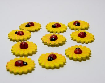 10 Ladybug Sunflower Wooden Sticker U 80 013
