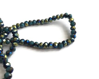 Metallic Gold Blue Crystal Beads, Glass Rondelle Beads, Faceted Glass Beads For Jewelry Making 4x3mm (0.157x 0.118inch) G 50 050