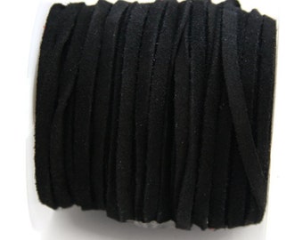 Black Suede Cord, Faux Suede Cord Lace Leather Flat Cord Black 3 yards 9 ft S 40 090