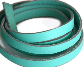 10mm Emerald Flat Leather Cord, Lace Strap, Flat Leather Cord, Leather Bracelet S 40 096