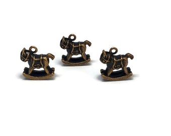5 Rocking Horse Charm, Rocking Horse Pendant, Red Copper Rocking Horse Charm P 30 086