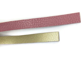 Pink Gold PU Synthetic Leather Flat Cord Strap, Gold Pink Flat Leather Cord, Double Side Strap Lace, Licorice Bracelet 8inch / 20cm S 40 255