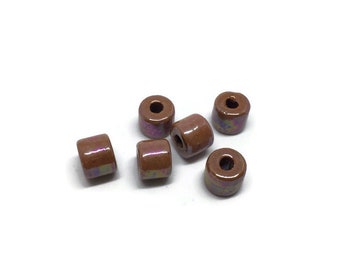 15 Brown Ceramic Tube, Mykonos Greek Ceramic 8x6mm Glazed Beads Enamel Ceramic Mykonos Greek Beads C 10 452