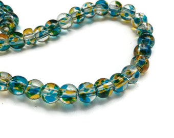 50 Yellow Blue Spotted Glass Beads, 6mm Round Glass Beads, Multicolour Spot Glass Beads G 50 027